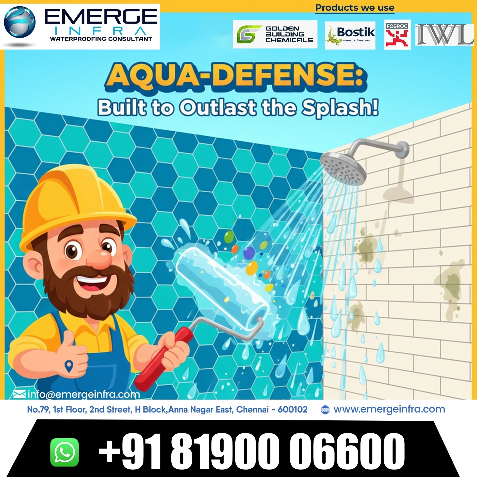 Protect your home and enjoy a leak-free future with our professional waterproofing services in Chennai. Visit us at www.emergeinfra.com or email us at info@emergeinfra.com to get started today!