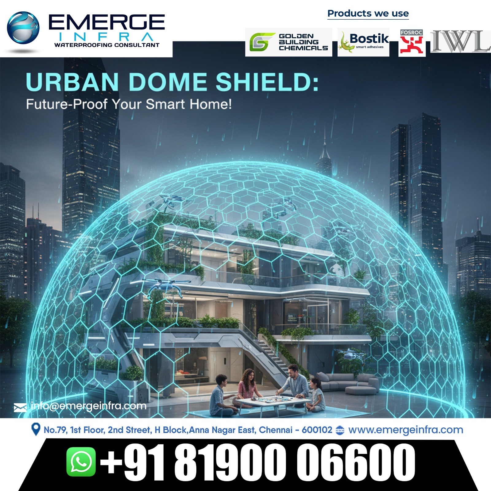 In today’s world of modern architecture and smart living, your home deserves more than just style — it needs strong protection against weather, leaks, and moisture. That’s where Emerge Infra, the best waterproofing company in Chennai, steps in with its innovative Urban Dome Shield – a symbol of total waterproofing protection for the future! 🌦️