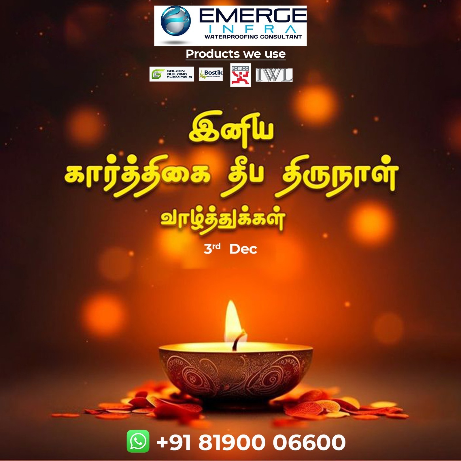 Emerge Infra wishes everyone a Happy Karthigai Deepam! On this auspicious day of light, may your homes shine with positivity, peace and protection. Just like the deepam spreads brightness and drives away darkness, our waterproofing solutions protect your home from leaks, dampness, and seepage.