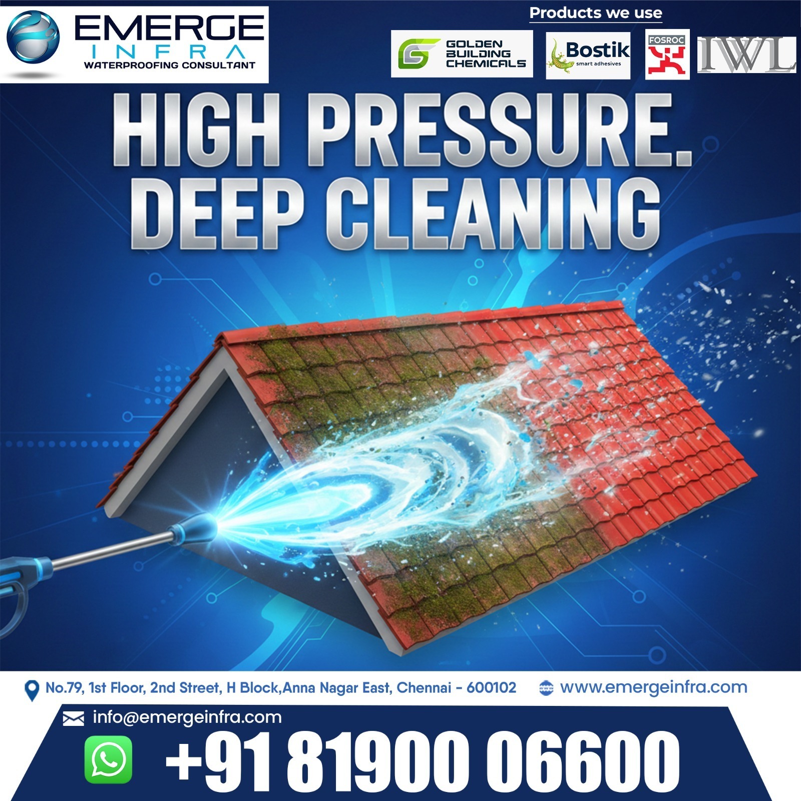 When it comes to protecting your property from leaks, seepage, and structural damage, choosing the Best Waterproofing Company in Chennai is crucial. At Emerge Infra – Waterproofing Consultant, we provide professional water proofing in Chennai combined with advanced High Pressure Deep Cleaning services to ensure long-lasting protection for your roof and terrace.
