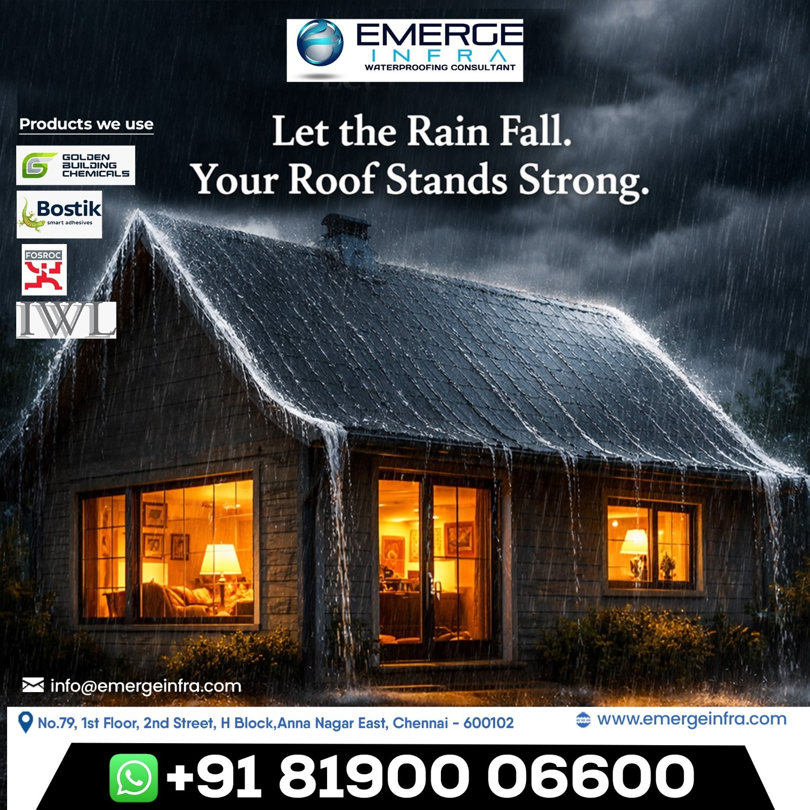 When heavy rains hit, your roof should protect your home—not become the source of leaks and damage. If you are facing seepage, damp walls, or water leakage issues, it’s time to choose the best waterproofing company in Chennai. At Emerge Infra, we specialize in advanced water proofing solutions in Chennai that ensure long-lasting protection for residential and commercial buildings.